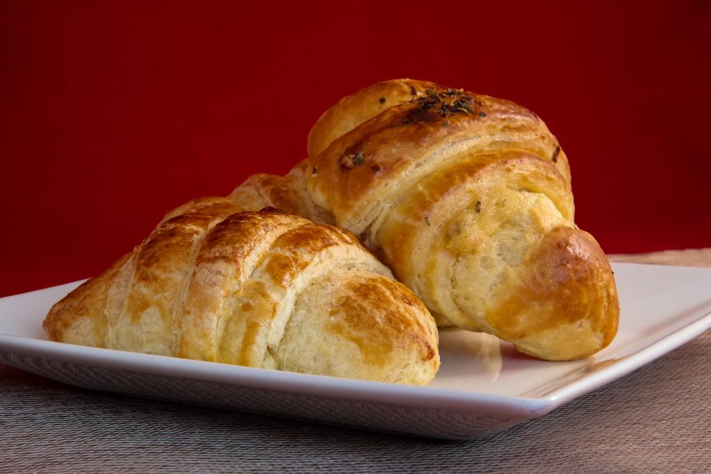 Massa folhada recheada com peito de peru defumado e requeijão cremoso.